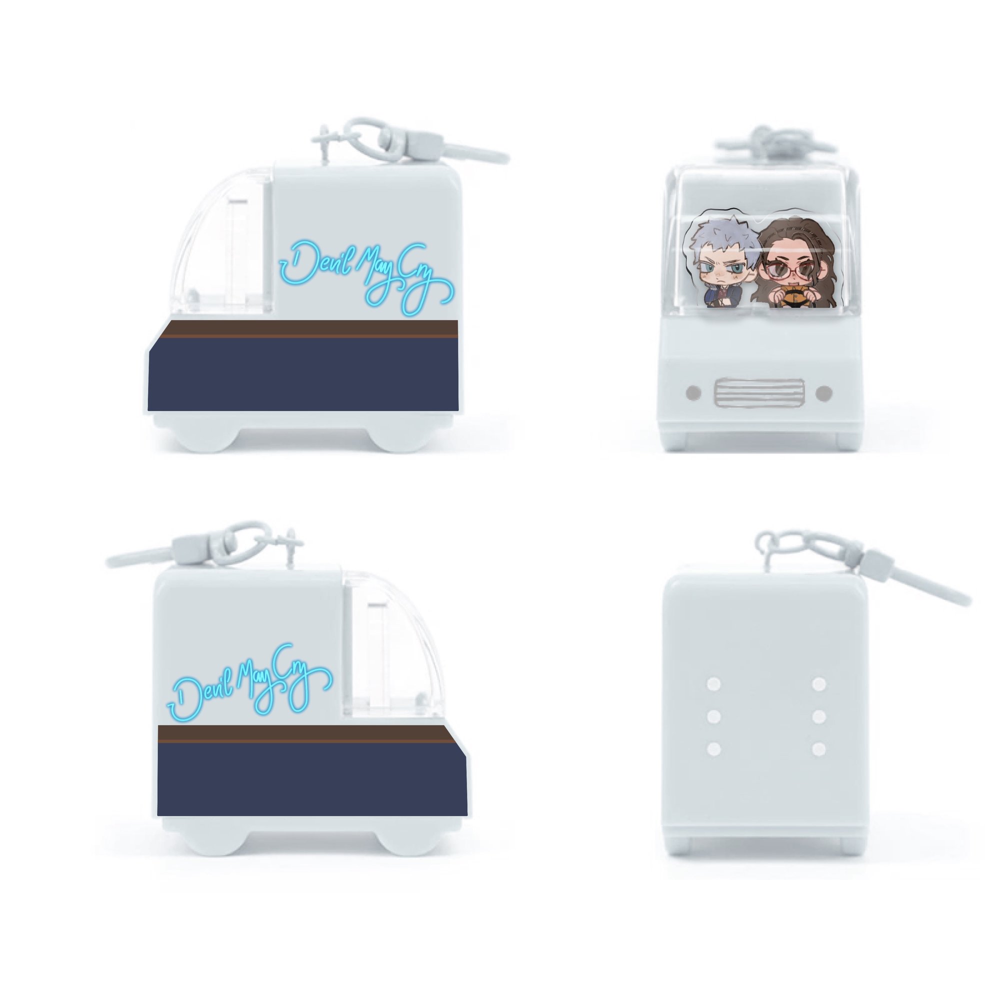 Plastic 3d van charm with exterior printing to resemble the in game DMC van and mini acrylic of Nico and Nero in the front seats!55mm height x 56 mm length x 36 mm width