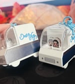 Plastic 3d van charm with exterior printing to resemble the in game DMC van and mini acrylic of Nico and Nero in the front seats!